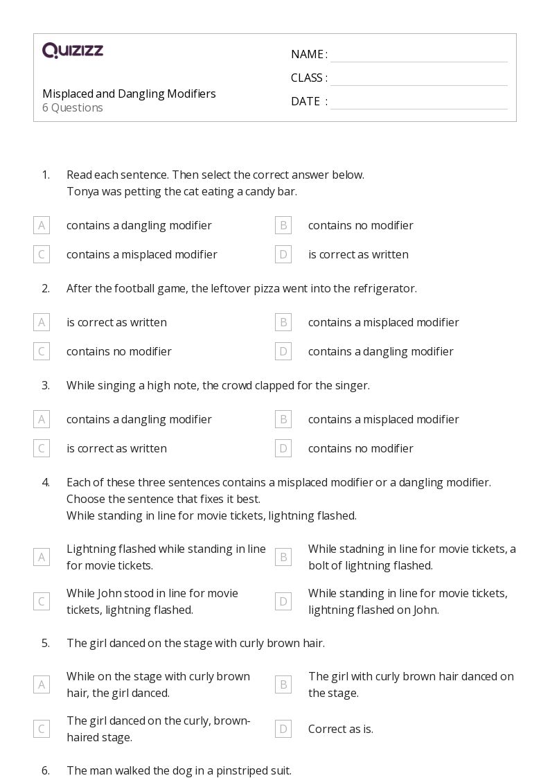 Dangling modifiers a modifier must have the word it modifies present in the sentence. Check your answers with the interactive version of the exercise. Our misplaced and dangling modifiers worksheets are carefully structured to help students develop their skills progressively. Check your answers with the interactive version of the exercise.