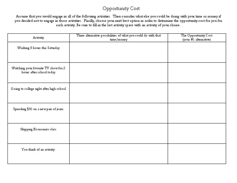 Opportunity Cost Worksheet
