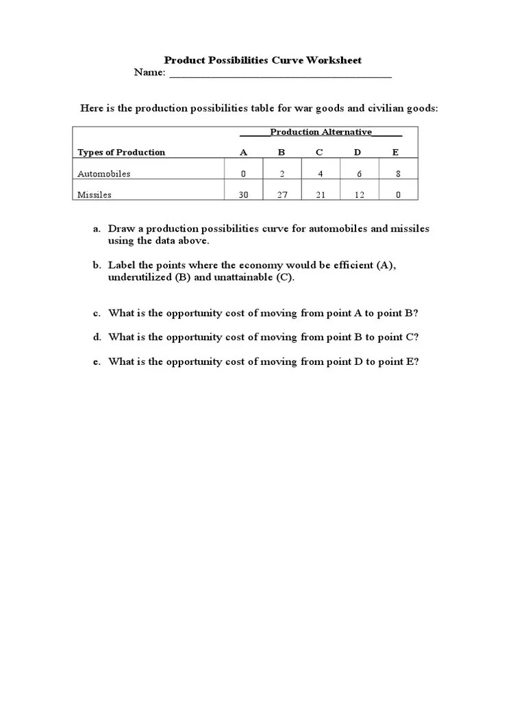 Product Possibilities Curve Worksheet