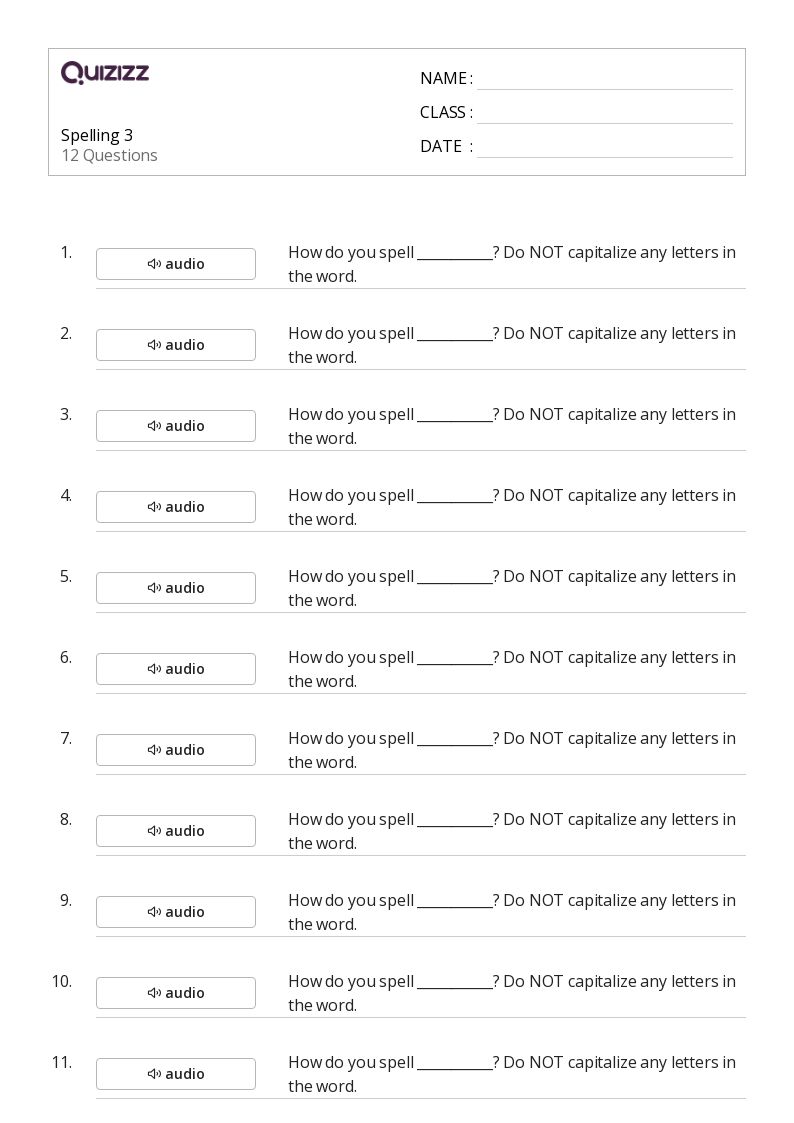50+ Spelling worksheets for 5th Grade on Quizizz Free & Printable