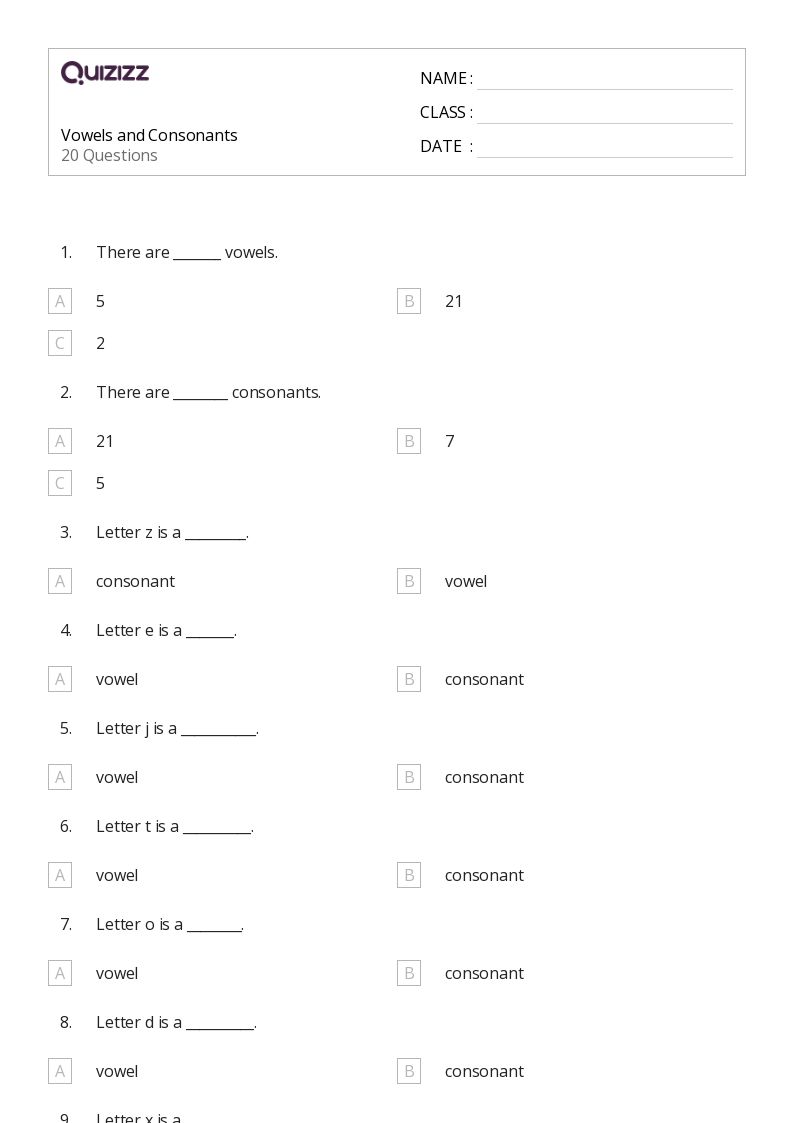 Vowels Activity Worksheet